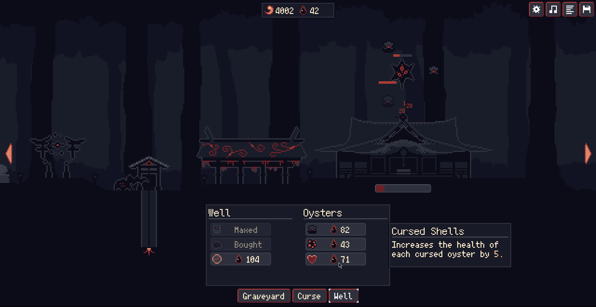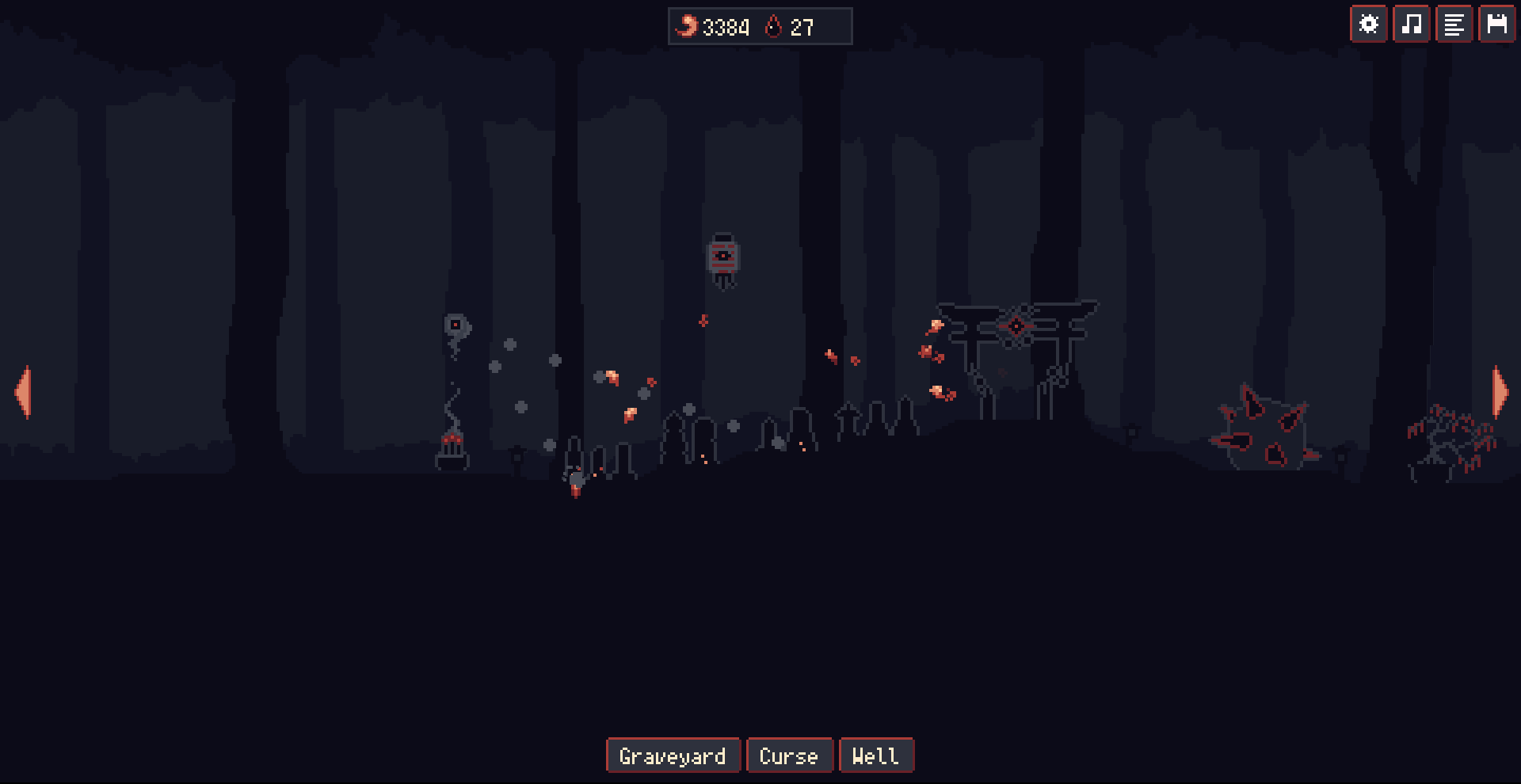 For the end game I would’ve love to see some details about damages from the last curse, how it is calculated, and the link with the total number of collected souls. Overall, the end game felt a bit slow, but mostly because you have to maintain the mouse button pressed on that well for so long… Also I felt sad that the last upgrade of the well speed collection was still below manual speed, my hope of finally releasing that mouse button was crushed…